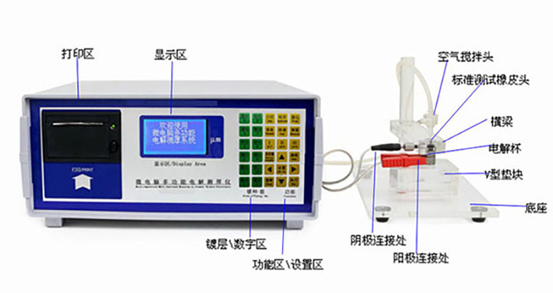 承蒙選擇微電腦多功能電解測厚儀,深表感謝!該測厚儀器是根據化學中的庫侖定理(Q=nF)與現代微電腦技術及執行GB/T4955-2008/ISO2177:2003生產,具有結構先進,性能穩定可靠,功能齊全的特點。對多數合金型金屬和非金屬的金屬鍍層厚度的測定適用,是國際標準中首推的一種鍍層測厚方法一庫侖法類儀器。使用本儀器可以保障用戶單位的產品質量,防止原材料的能源的浪費。利用本儀器還可以幫助用戶找到適合不同要求的電鍍工藝,是有關成品廠及電鍍廠必備的儀器。